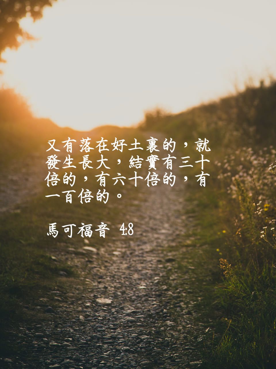 ? 又有落在好土裡的,就發生長大,結實有三十倍的,有六十倍的,有一百倍的。可4:8